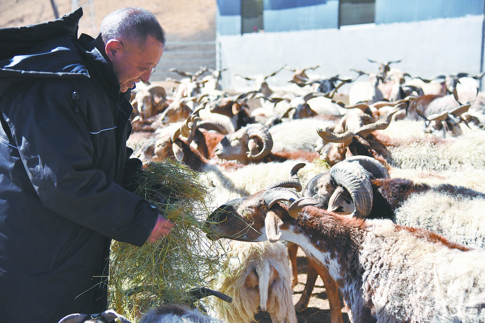 在自家“生態(tài)家庭牧場(chǎng)”給賈洛羊補(bǔ)飼的文格。李興發(fā) 攝