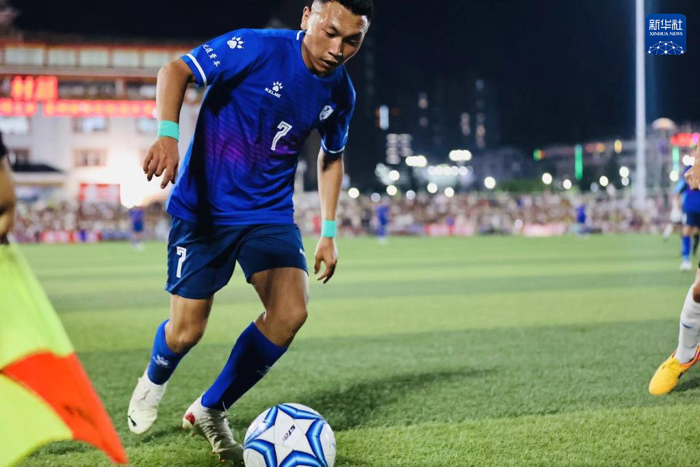 才文索南曾是一名職業球員,在哈爾濱度過了五年職業生涯,這次參加“村超”是他第一次代表家鄉到省外參賽。“在這個難忘的夜晚,我一次次感受著足球帶來的美好。”