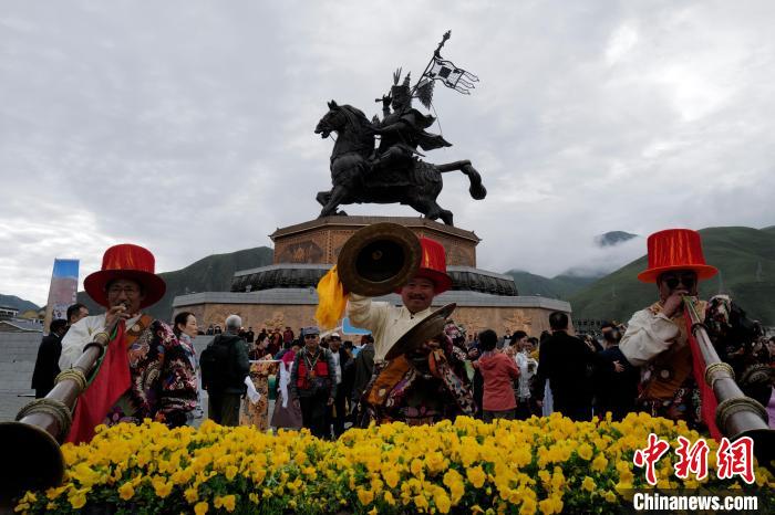 圖為玉樹市格薩爾廣場的藏族傳統器樂表演。陸江濤 攝