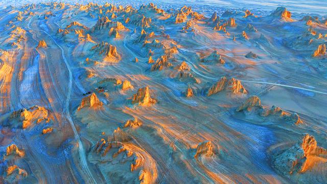 圖為航拍柴達木盆地艾肯泉。(資料圖) 莫啟明 攝