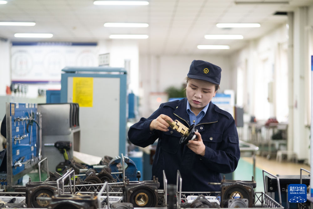 10月12日,在中國鐵路青藏集團有限公司西寧東車輛段制動班組,馬婷檢查120閥主閥配件。新華社記者 張龍 攝