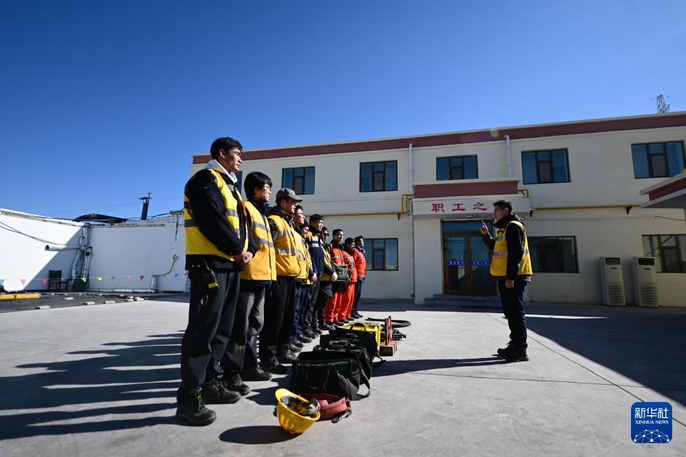1月29日,格爾木電務段格爾木東信號車間察爾汗信號工區的職工在開展檢修作業前分配任務。新華社記者 張龍 攝