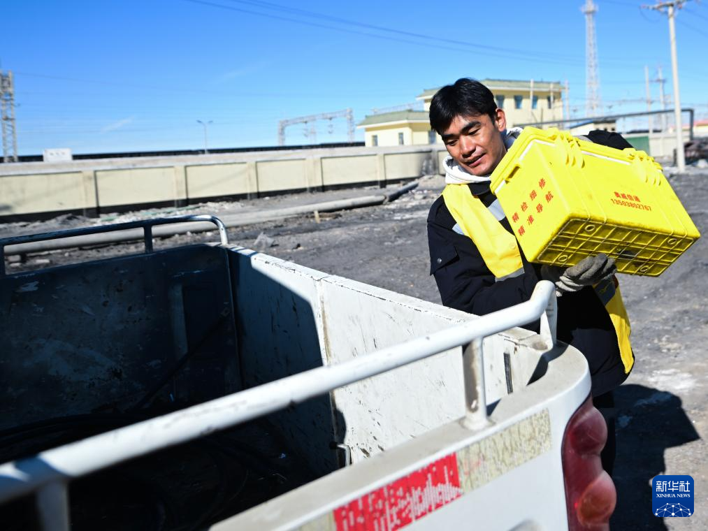 1月29日,格爾木電務段格爾木東信號車間察爾汗信號工區職工普布旦增將工具箱裝車準備前往區間進行作業。新華社記者 張龍 攝