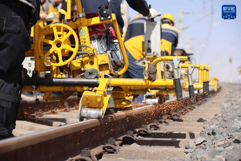 鐵路職工操作機器打磨軌道。(受訪單位供圖)