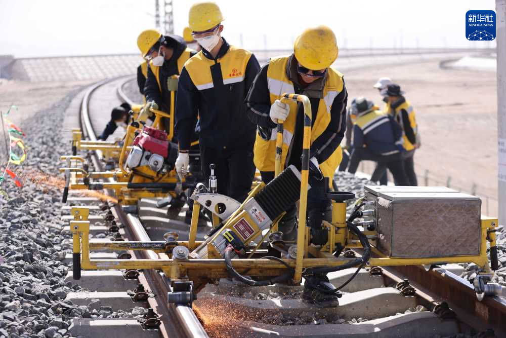 進入4月,昆侖山上仍被白雪覆蓋。1日一早,在昆侖山腳下的格庫鐵路格爾木至格爾木南上行聯絡線區間防護欄外,中國鐵路青藏集團有限公司格爾木工務段重點維修車間的8名職工正仔細地檢查裝備,為稍后的鋼軌“拋光”作業做好準備。