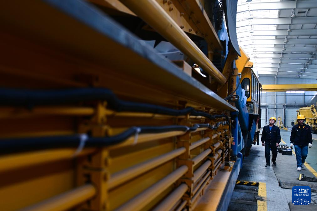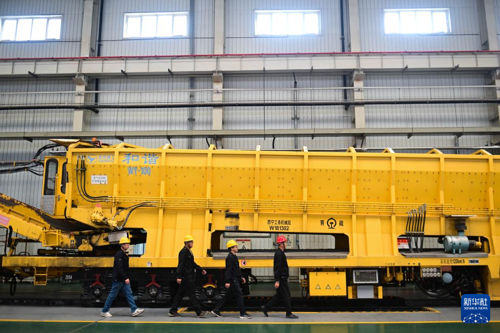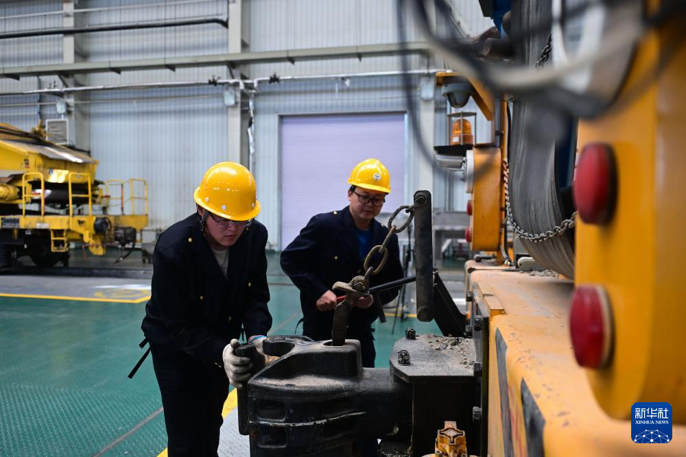 4月25日,中國鐵路青藏集團有限公司西寧工務機械段職工在進行清篩車環車檢查。新華社記者 張龍 攝