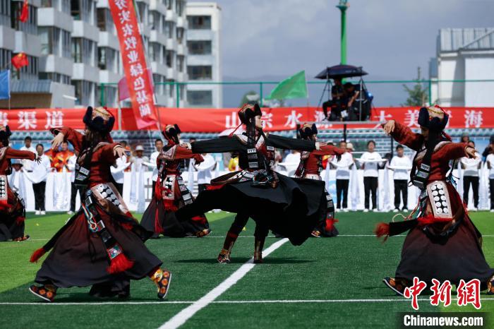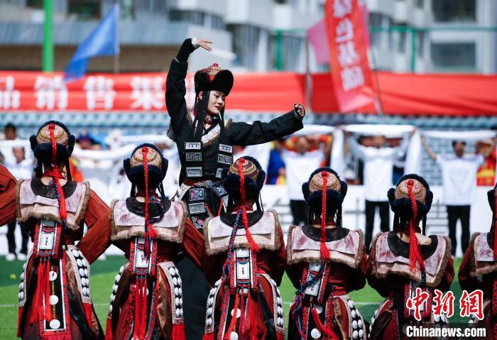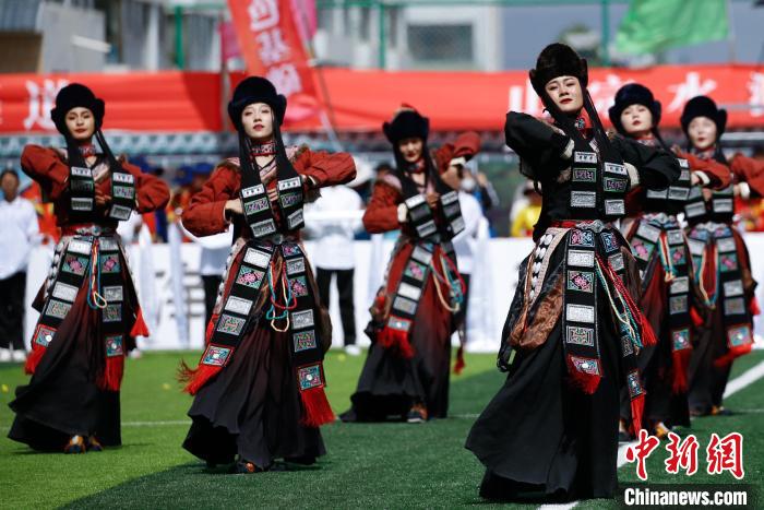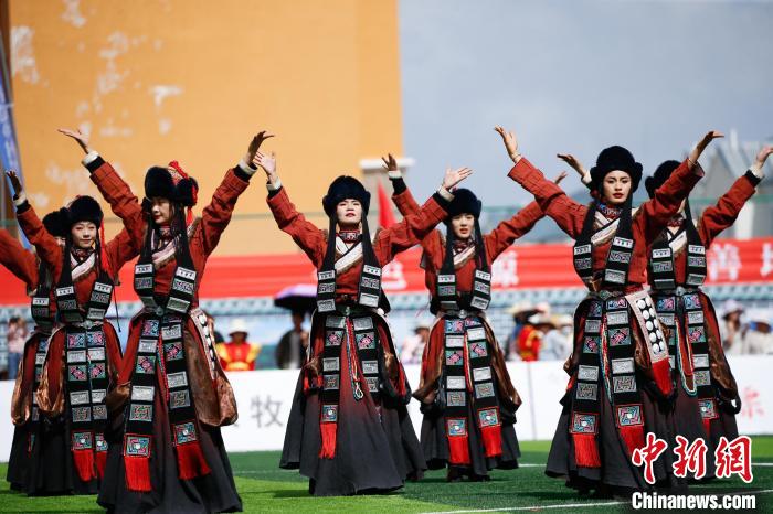 圖為演員通過舞蹈展示國家級非遺華熱藏族服飾。馬銘言 攝