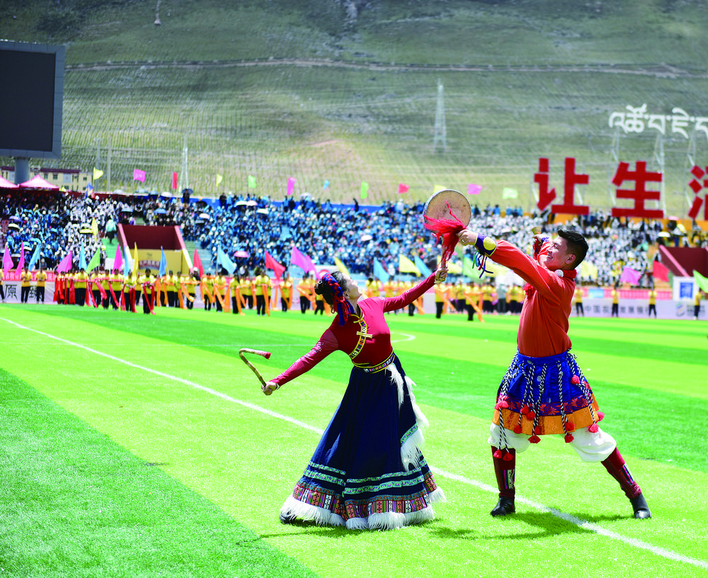 玉樹市民求培說:“玉樹足球是我們的驕傲,我自己也非常喜歡踢足球,今天特意過來為家鄉的球隊喝彩助威,希望他們可以在家門口取得勝利。”隨著一聲哨響,比賽正式開始,所有人的目光都聚焦在綠茵場上,隊員們奔跑如飛迅速進入“戰斗”狀態。一腳傳中、挑球過人……雙方互不相讓,積極拼搶。