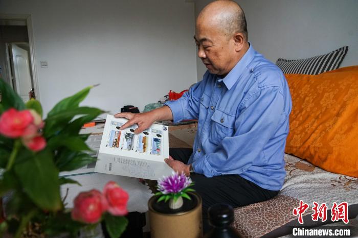圖為徐超翻看關(guān)于青藏鐵路的紀(jì)念站臺票冊。 馬銘言 攝