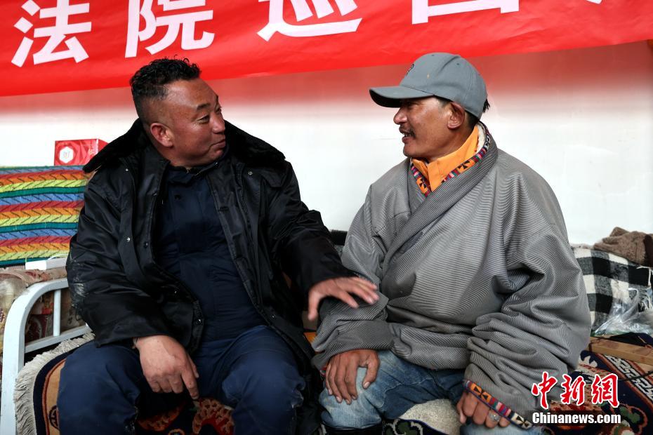 6月3日,在青海省果洛藏族自治州瑪多縣花石峽鎮,瑪多縣人民法院“馬背法庭”的法官在牧民家中完成訴前調解。薛蒂 攝