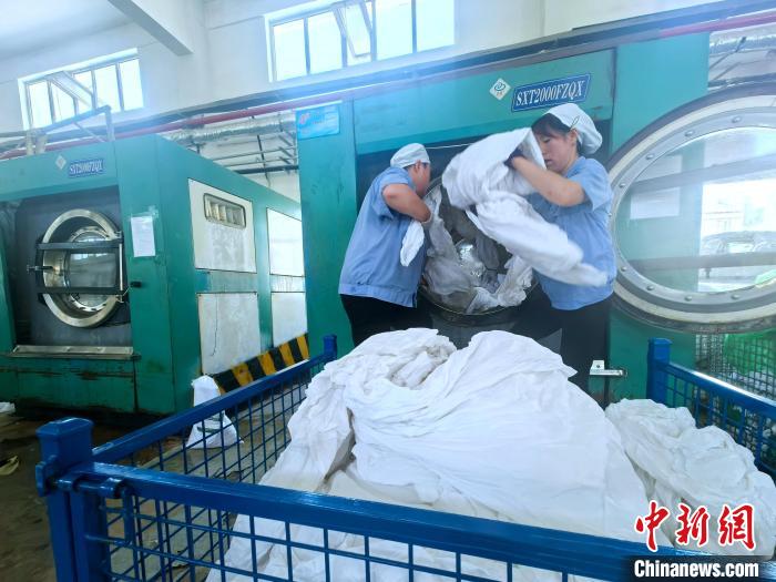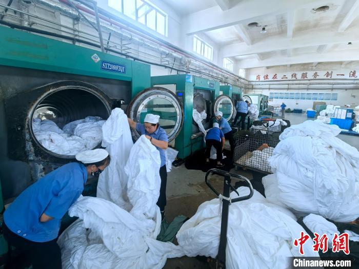 在每日不間斷的迎來(lái)送往中,中國(guó)鐵路青藏集團(tuán)有限公司的洗滌廠也異常繁忙。