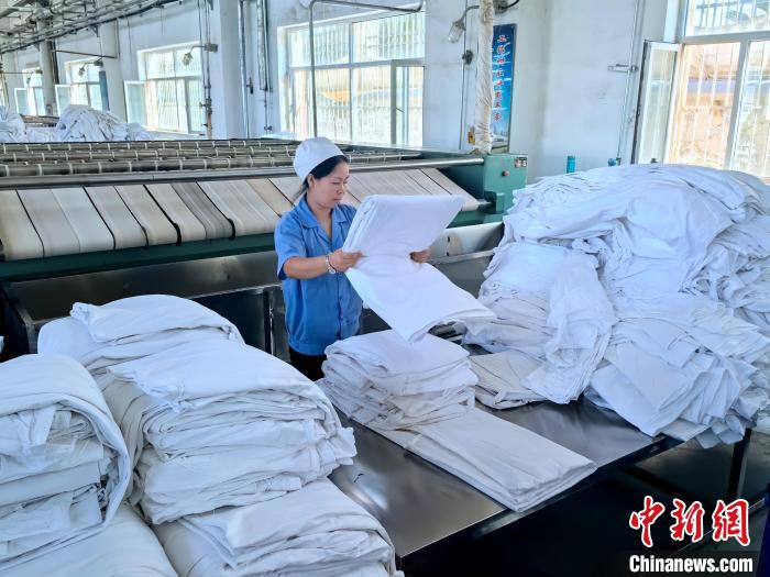 “漂洗完的床單被套在進(jìn)行了12分鐘的高速脫水后,就到了熨燙烘干環(huán)節(jié),燙平機(jī)會(huì)把漂洗完的床單熨燙平整。不過(guò),在此之前,洗滌工要對(duì)洗滌質(zhì)量進(jìn)行檢查,只有達(dá)標(biāo)的物件才能送進(jìn)熨燙機(jī)。別看好多工作都是由機(jī)器來(lái)完成,一個(gè)班下來(lái),光折疊、打包這一項(xiàng)工作,都讓人累得抬不起胳膊。”文英說(shuō)。