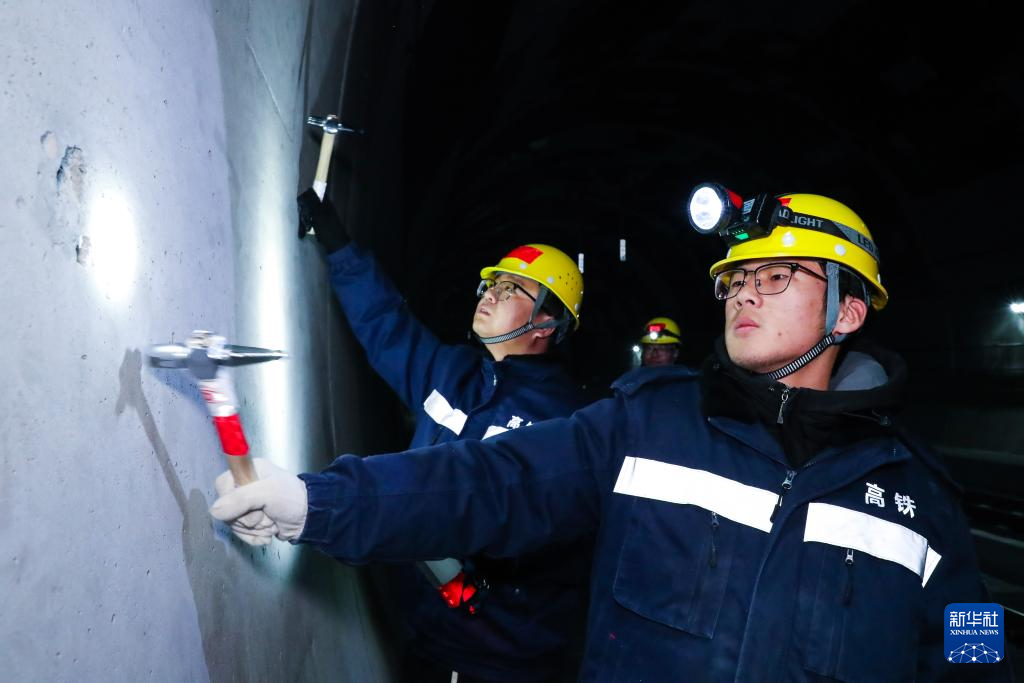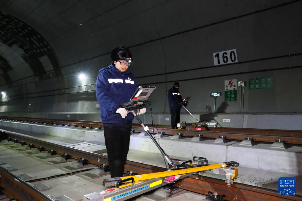 面對(duì)首次春運(yùn)“大考”,這群守護(hù)者頂著刺骨寒風(fēng),鉆隧道、爬高山,在列車停運(yùn)的深夜對(duì)隧道及線路仔細(xì)檢查,為旅客的春運(yùn)回家路保駕護(hù)航。