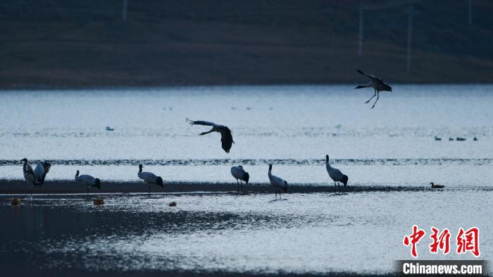 記者本月15日至16日從西藏拉薩市林周縣澎波河流域觀察了解到,中國國家一級保護動物黑頸鶴已大量遷徙至該區域越冬。