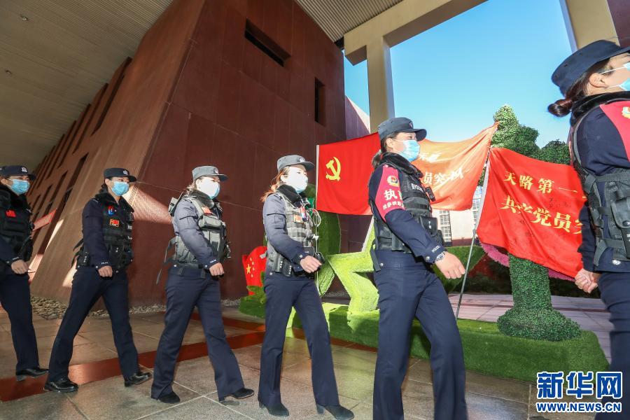 1月10日,中國人民警察節當日,拉薩火車站派出所“女子格桑花”警組在巡邏。新華社發(胡安鵬、黃飛攝影報道)