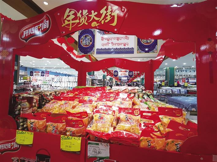 隨后,記者來到娘熱路的哈達購物廣場,超市里掛起的大紅燈籠和播放的“恭喜發財”、“歡樂過大年”等音樂,給商場增添了不少喜慶,而來這里采購年貨的人也不少!過年備什么年貨,吃什么好吃的,這是大家最為關心的事情。記者看到,超市里堆滿了各種各樣的零食大禮包、糖果、飲料。除了零食糖果,風干肉、香腸、臘肉等這些過年餐桌上必不可少的年味,早已經放上貨架等待市民選購。