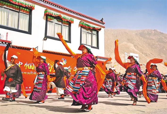 圖為森布日極高海拔搬遷群眾慶祝“三八”婦女節
