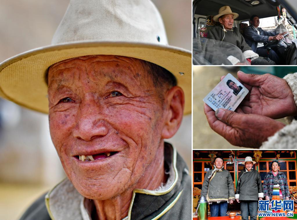 這是一張拼版照片,左圖為多扎木的肖像(3月20日新華社記者張汝鋒攝);右上圖為多扎木和兒子準備坐車外出(3月20日新華社記者孫瑞博攝);右中圖為多扎木老人的身份證(3月20日新華社記者孫瑞博攝);右下圖為多扎木(中)和兒子、兒媳在家中(3月20日新華社記者張汝鋒攝)。新華社發