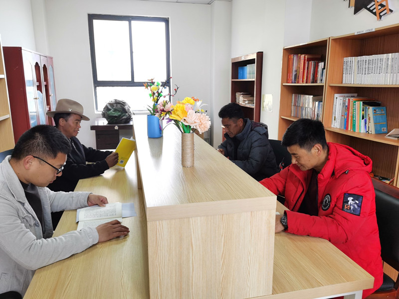 圖為林芝市察隅縣下察隅鎮竹尼村村民在農家書屋閱讀書籍。