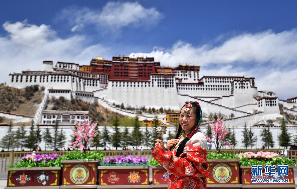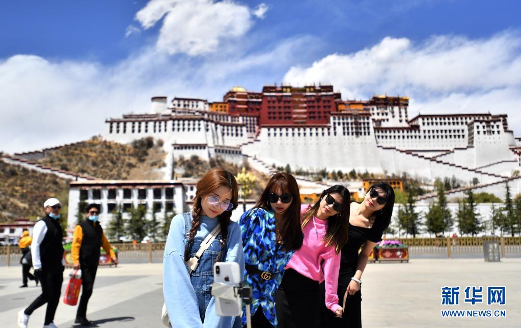 4月23日,來自重慶的游客在布達拉宮廣場留影。新華社記者 覺果 攝