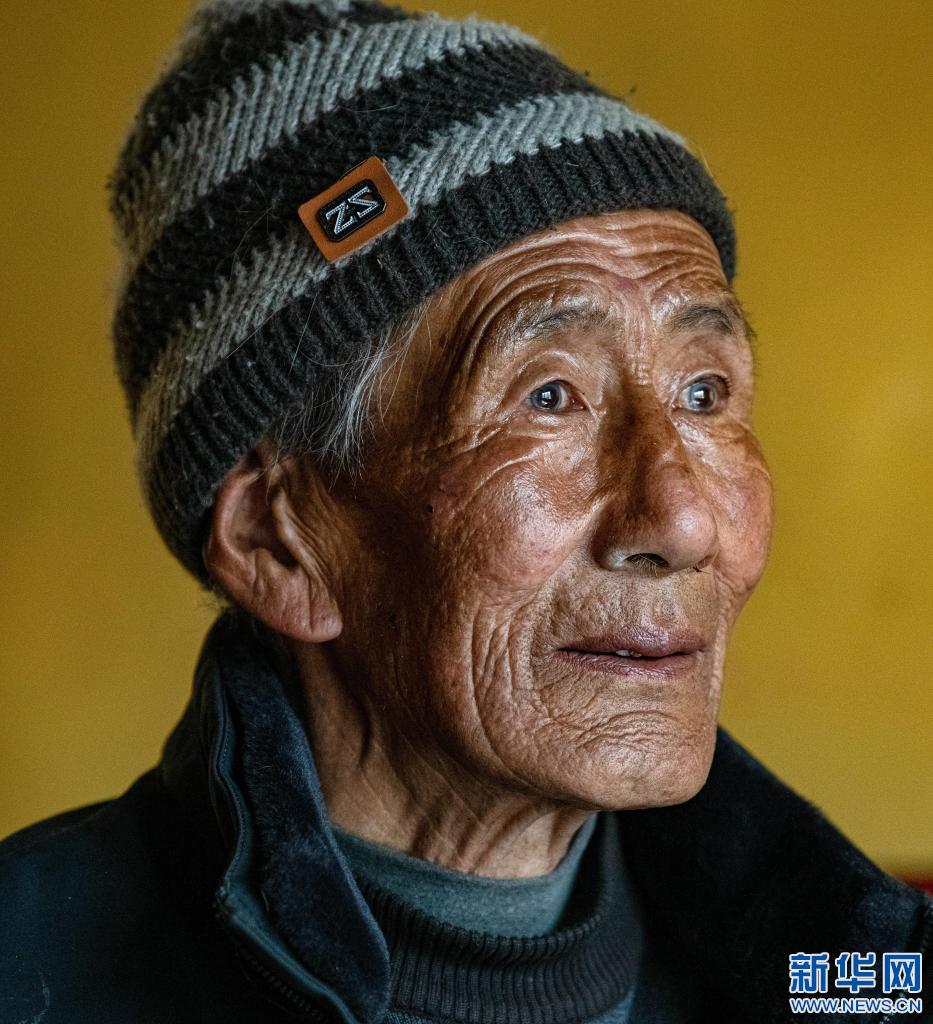 這是在拉薩市當雄縣寧中鄉麥靈村拍攝的次仁老人肖像(4月16日攝)。新華社記者 孫瑞博 攝