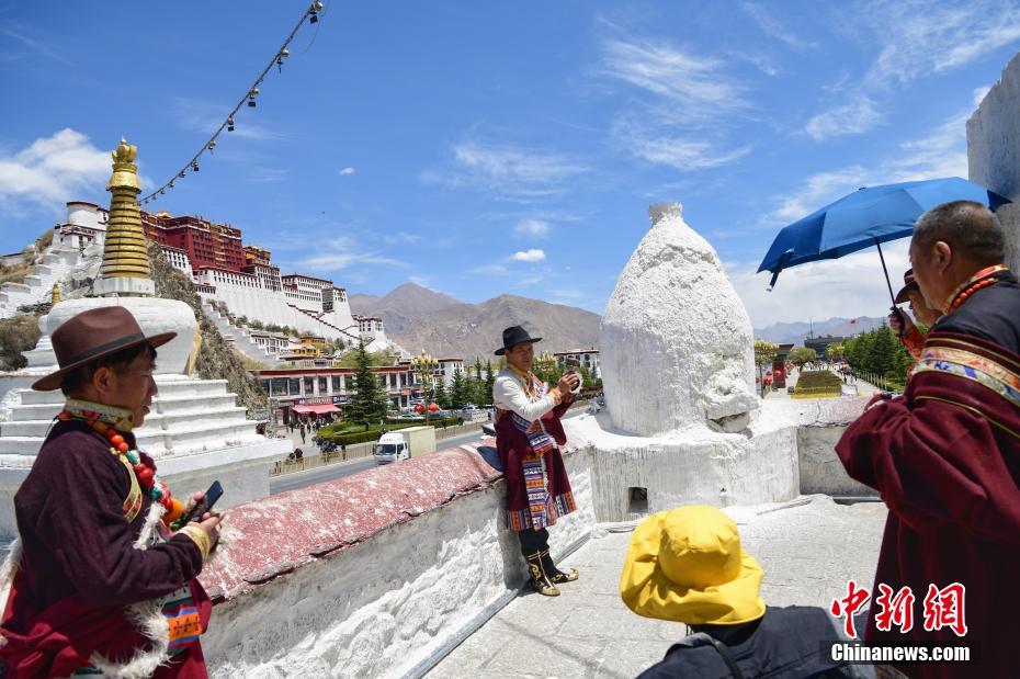 西藏官方發布數據顯示,2021年一季度,西藏接待國內外游客171萬人次,同比增長2.4倍,實現旅游收入13.78億元人民幣,增長3.1倍。“五一”假期將至,在拉薩布達拉宮、八廓街等地可以看到,身著藏族傳統服飾拍照留念的游客絡繹不絕,西藏旅游預計將迎來小高潮。圖為4月29日,藍天白云映襯下的布達拉宮。中新社發 貢嘎來松 攝