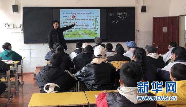 陳洪順給西藏自治區昌都市貢覺縣中學的學生上課(2020年4月30日攝)。新華社發