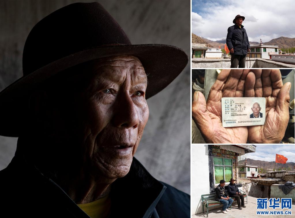 左圖:拉薩市當雄縣寧中鄉麥靈村次仁老人的肖像(4月16日新華社記者孫瑞博攝)。