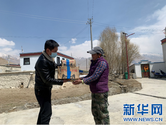 普蘭縣菜鳥物流共同配送站點快遞員在為村民送快遞。(新華網(wǎng)發(fā))