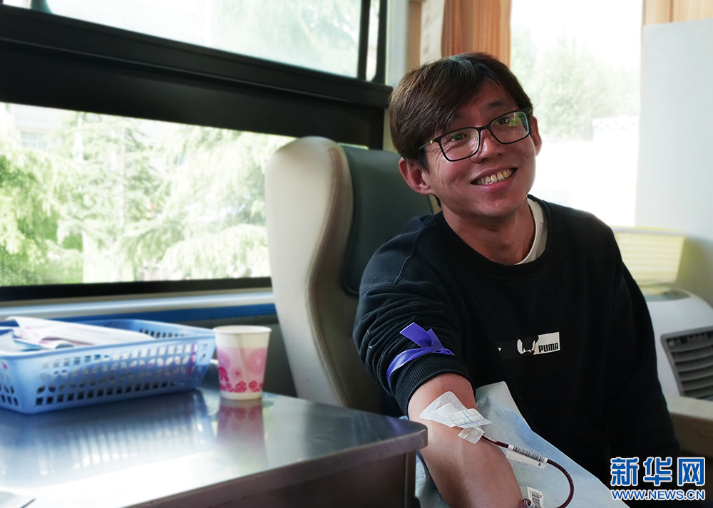 5月27日,來自北京大學人民醫院的援藏干部朱志峰在獻血。(新華網 旦增努布攝)