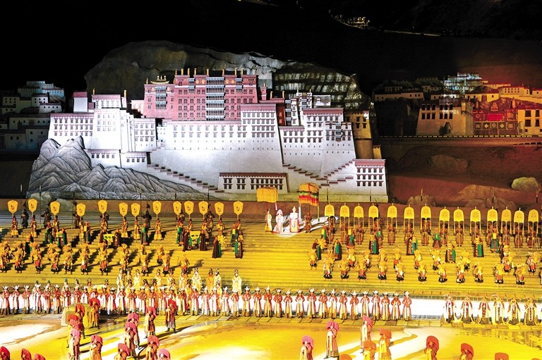 圖為《文成公主》大型實景劇演出現場。(資料圖片)記者 李洲 次旺 攝