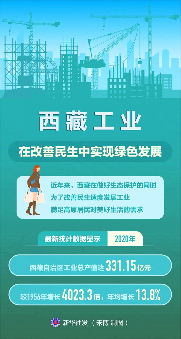 近年來,西藏在做好生態(tài)保護的同時,為了改善民生適度發(fā)展工業(yè),滿足高原居民對美好生活的需求。最新統(tǒng)計數據顯示,2020年,西藏自治區(qū)工業(yè)總產值達331.15億元,較1956年增長4023.3倍,年均增長13.8%。