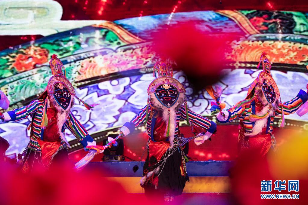 6月12日,在西藏拉薩市的自治區群藝館,演員表演藏戲《吉祥歡歌》。新華社記者 孫瑞博 攝