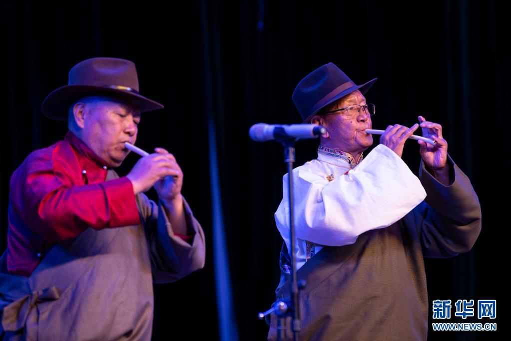 6月12日,在西藏拉薩市的自治區群藝館,演員用鷹笛演奏《幸福夢》。新華社記者 孫瑞博 攝