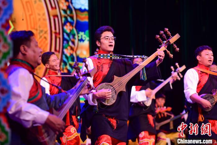 圖為西藏大學藝術學院音樂系帶來的扎念彈唱《普伊桑林貢巴》。 貢嘎來松 攝