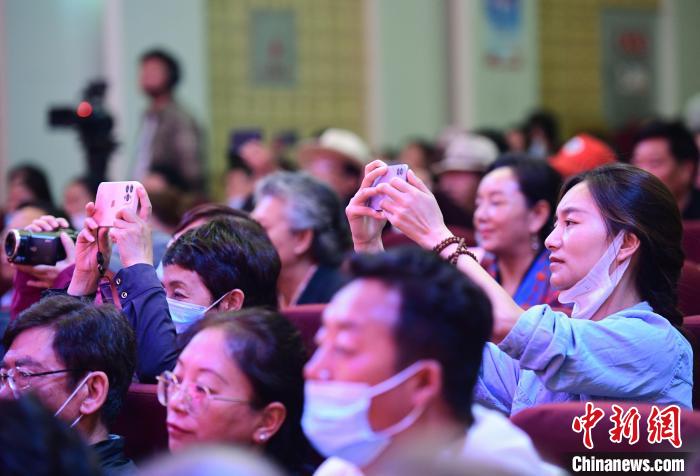 圖為場觀眾正在用手機拍攝西藏非遺演出。 貢嘎來松 攝