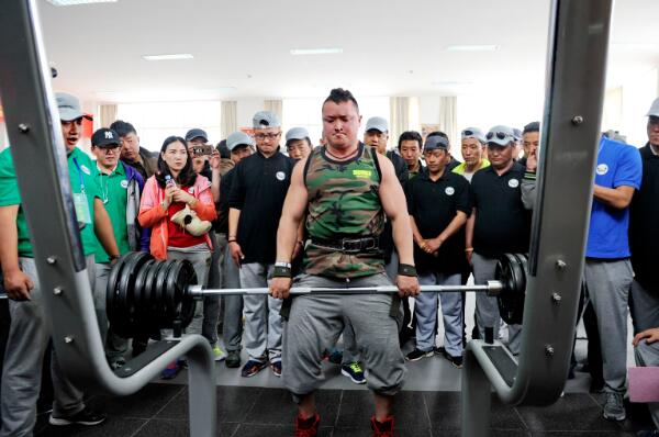 拉薩市城關(guān)區(qū)首屆健身大賽上,一位市民參加負重比賽。(2016年5月26日)。新華社記者 張汝鋒 攝