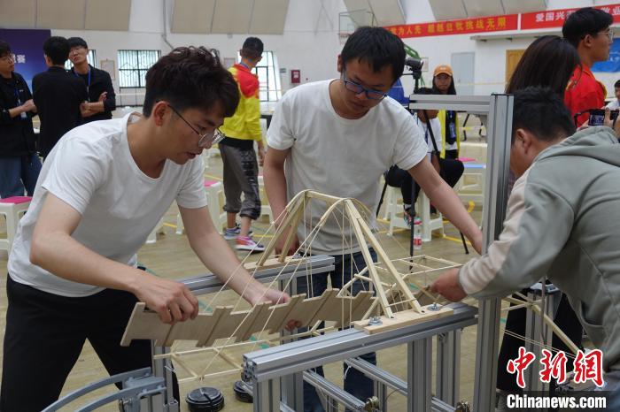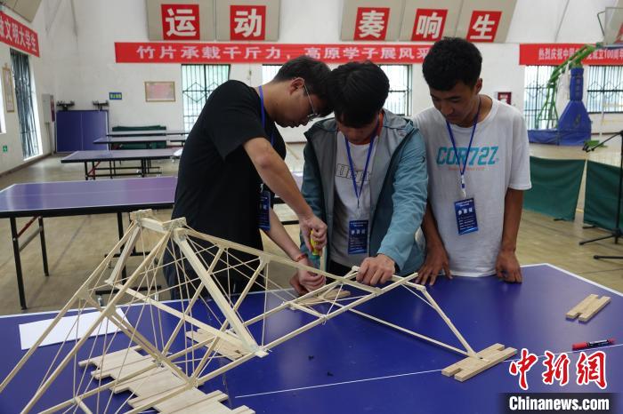 圖為第三屆西藏大學生結構設計競賽比賽現場。冉文娟 攝