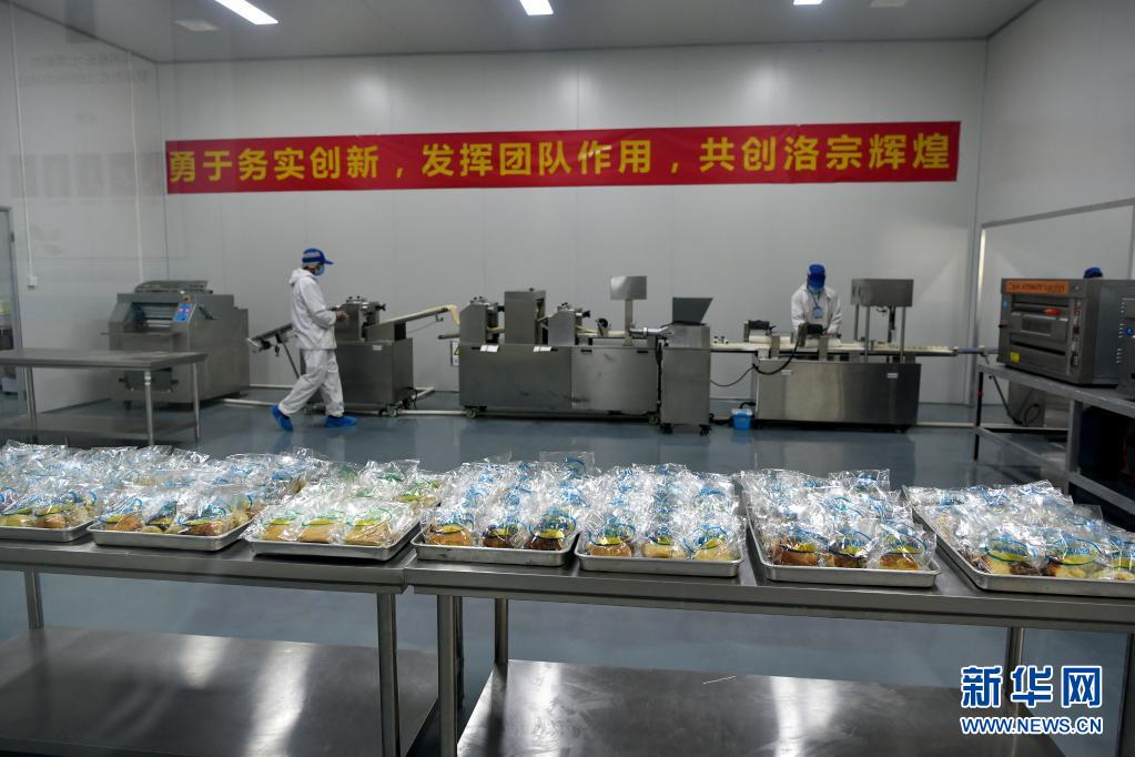 員工在洛宗特色產品開發公司的青稞面包糕點生產線上工作(7月24日攝)。新華社記者 李鑫 攝