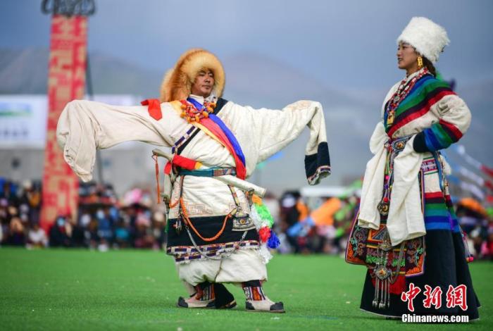 資料圖為西藏自治區拉薩市當雄縣賽馬節上的藏族傳統服飾表演。中新社記者 貢嘎來松 攝