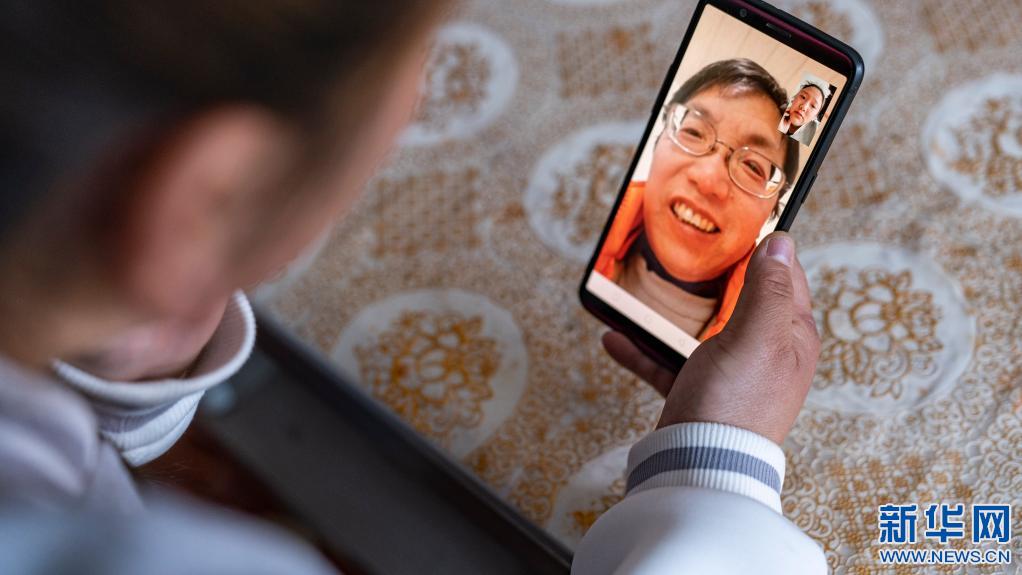 安娜在位于林芝市巴宜區的家中和父親視頻通話(4月4日攝)。新華社記者 孫非 攝