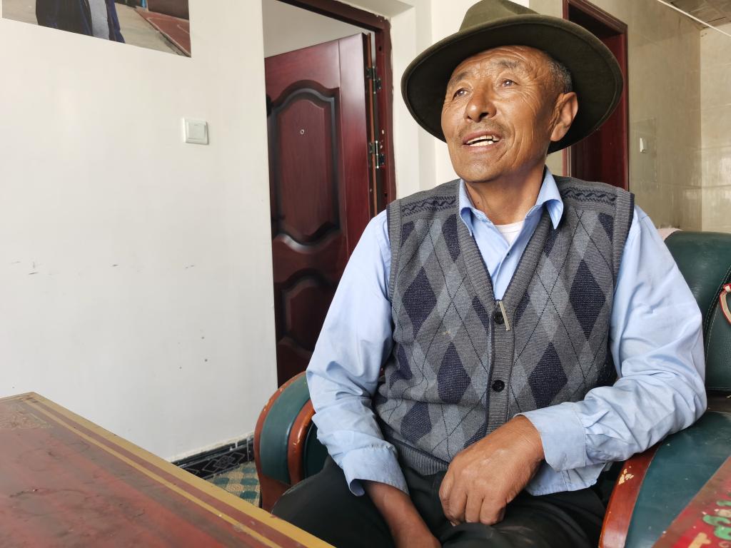 尼木縣麻江鄉達瓊村60歲村民仁青回憶曾經撿牛糞、用煤油燈的生活(2021年7月14日攝)。新華社記者劉洪明 攝