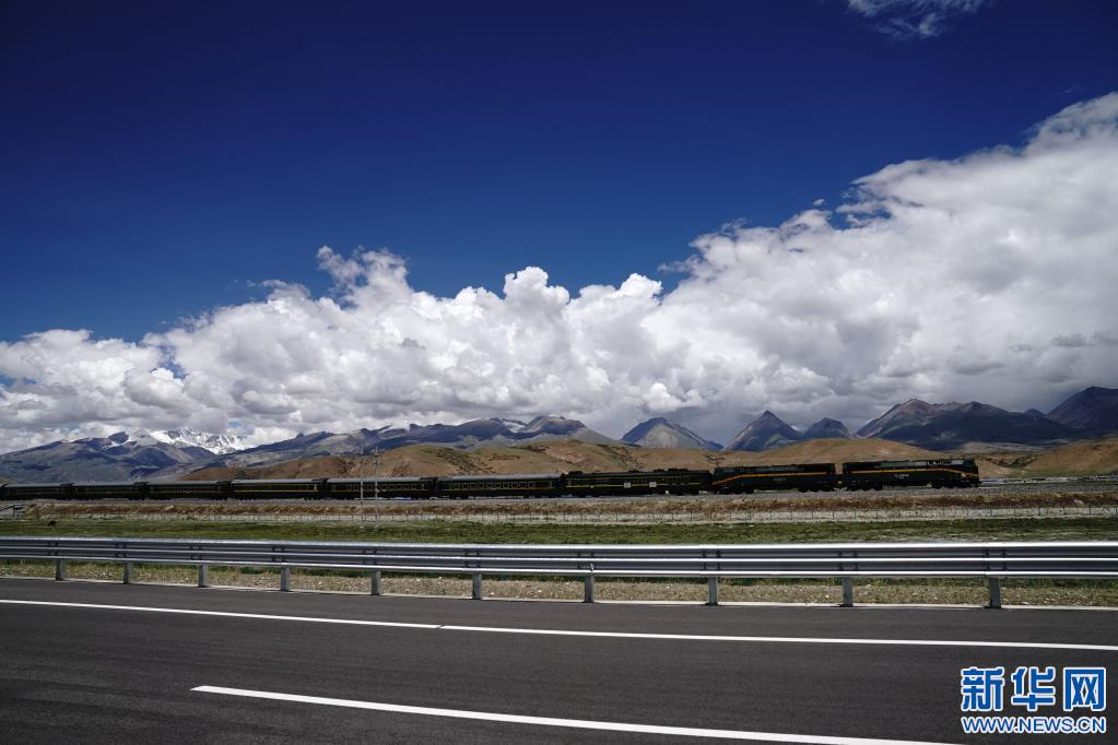 列車行駛在青藏鐵路拉薩市當雄縣境內(2021年6月28日攝)。新華社記者 劉洪明 攝