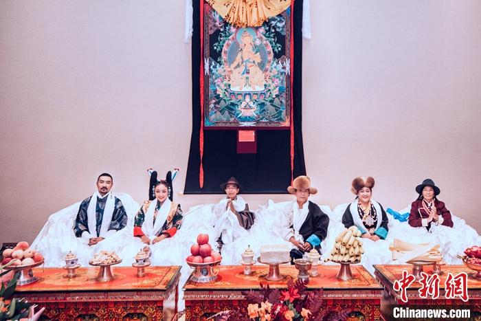 資料圖為德吉卓瑪和先生德格葉在婚禮上的照片。中新社發 德吉卓瑪供圖