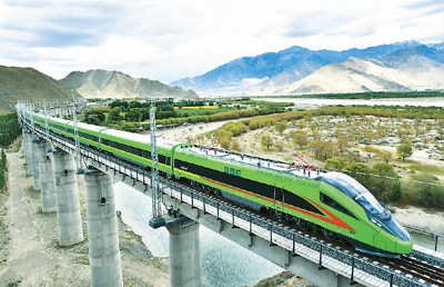 復(fù)興號列車行駛在西藏山南市境內(nèi)。新華社記者 覺 果攝