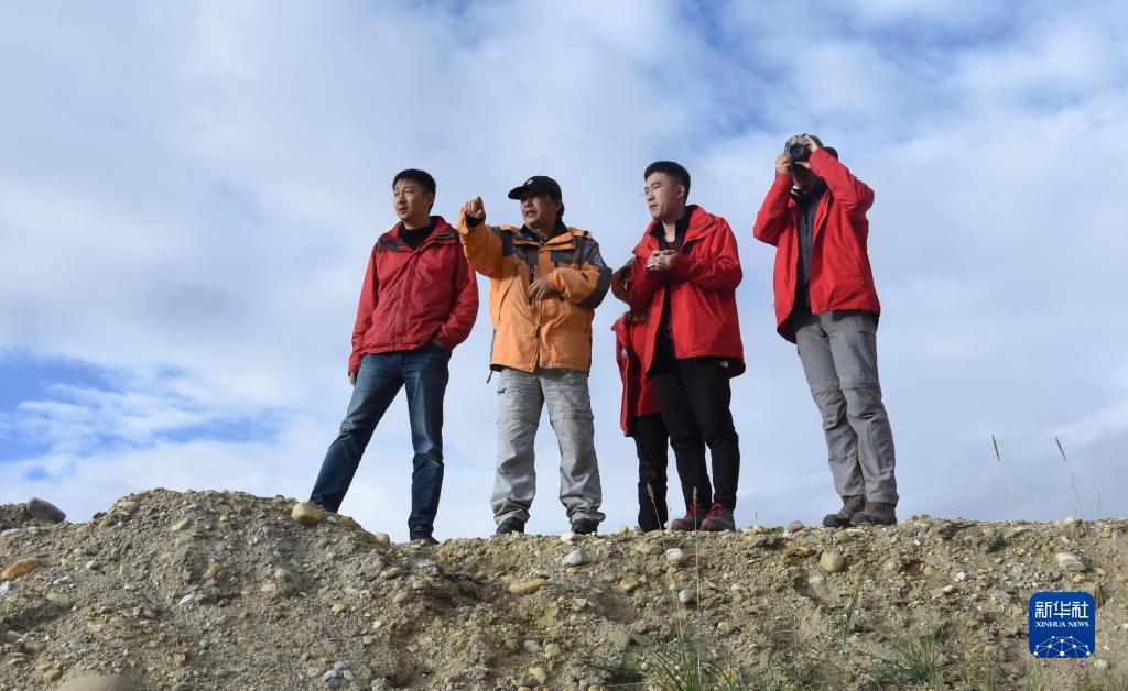 9月9日,在西藏阿里地區(qū)內(nèi)的喜馬拉雅山脈,中科院地理科學(xué)與資源研究所客座教授李渝生(左二)和年輕的科考隊(duì)員觀察地貌。新華社記者 杜剛 攝