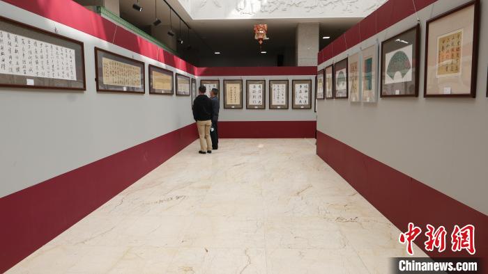 圖為市民在展廳內觀看書法作品。 謝牧 攝