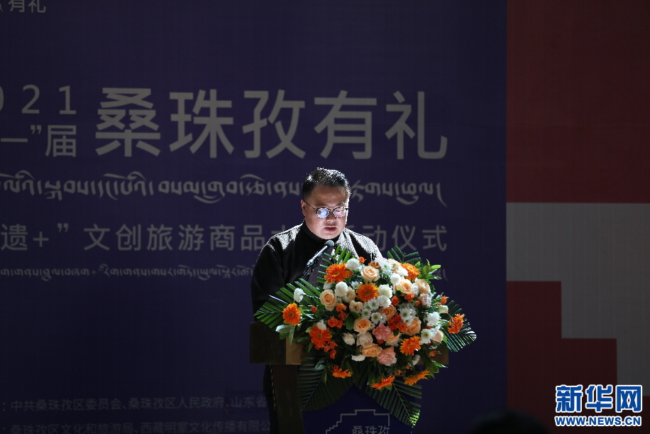 西藏旅游文創商品協會負責人方堃介紹桑珠孜區非遺調研情況(桑珠孜區融媒體 供圖)