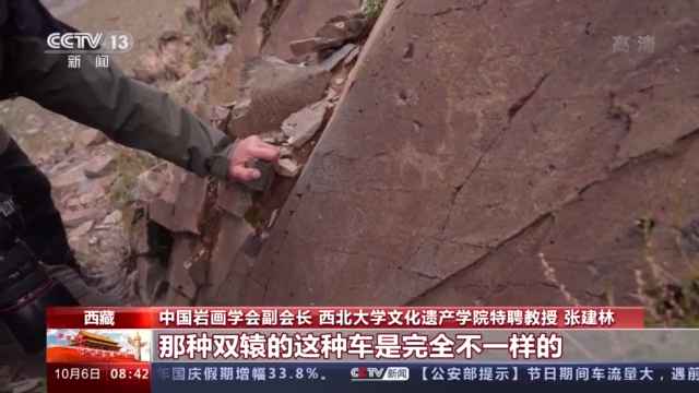 中國巖畫學會副會長、西北大學文化遺產學院特聘教授 張建林:歐亞草原東部的車輛巖畫的制作的這種習俗,從北向南通過青海,翻過昆侖山和唐古拉山到了藏北高原,然后進一步再傳播,就是車輛巖畫的這種傳播的線路。