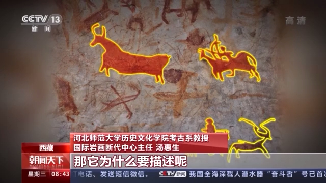 河北師范大學歷史文化學院考古系教授、國際巖畫斷代中心主任 湯惠生:車更多的是一種觀念文化的考古,實際上,在青藏高原中,歷史上來看沒有車。那它為什么要描述呢?對于狩獵所寄予的希望,有更多的社會意義和文化象征在里頭。